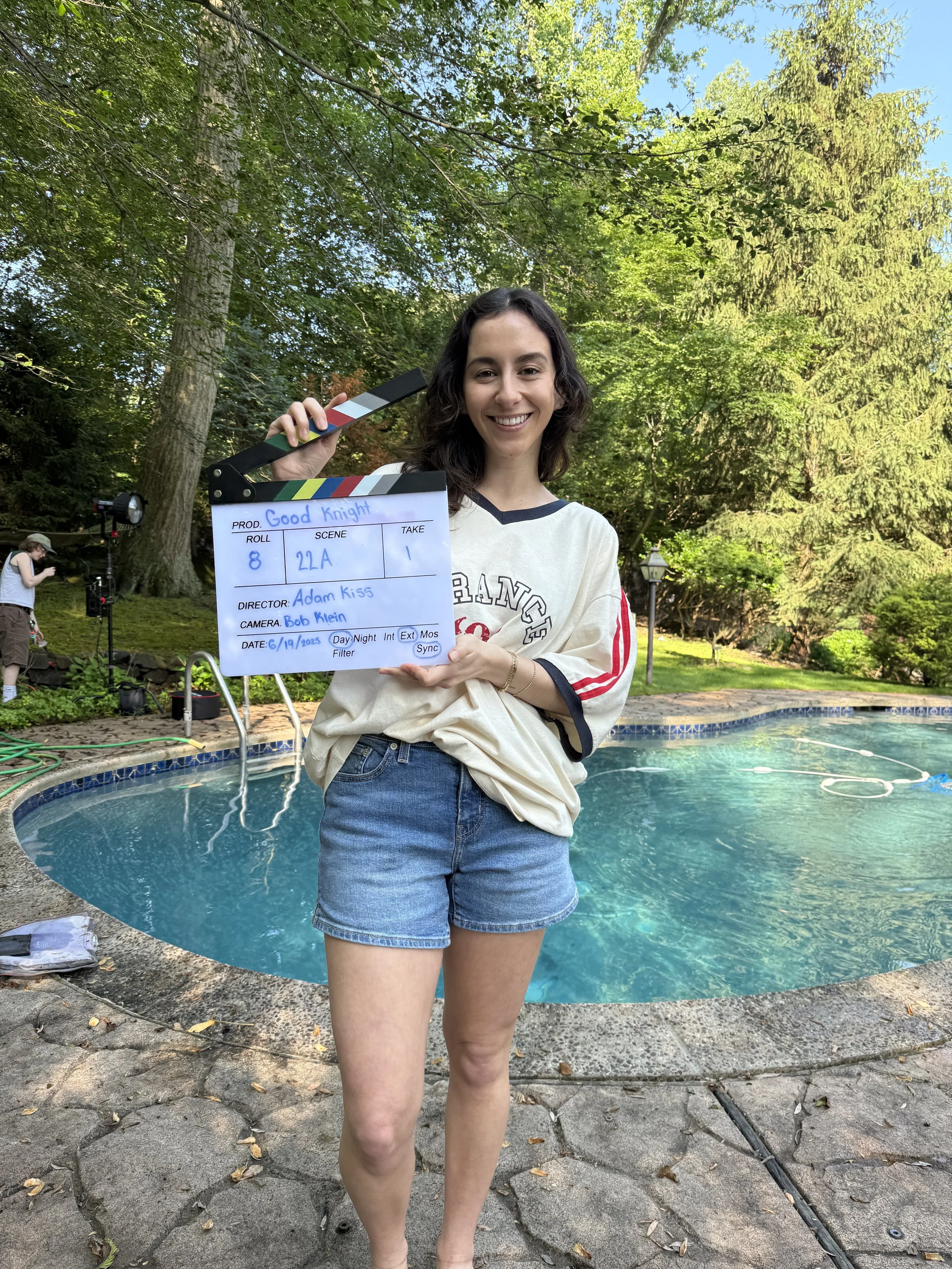Jackie Vlahos appears as Michelle, a composed and enigmatic young woman introduced in a quiet backyard scene. Emerging from a pool with calm self-possession, Michelle offers a glimpse into the layered, emotionally charged atmosphere that defines the film.